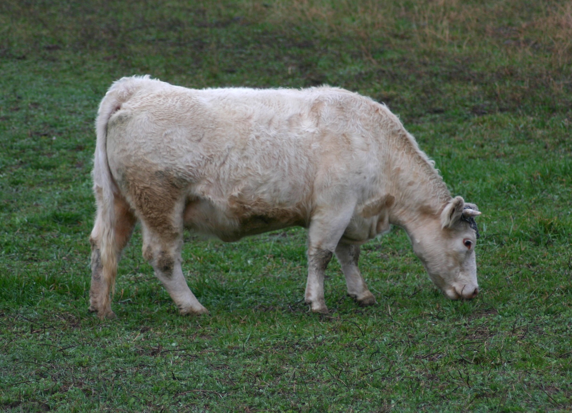 Popis: Hovězí dobytek plemene Charolais. Charolaiský skot je mohutné masné plemeno skotu původem z Charolles ve Francii. Bylo vyšlechtěné v 19. století a patří k nejvýkonnějším masným plemenům.