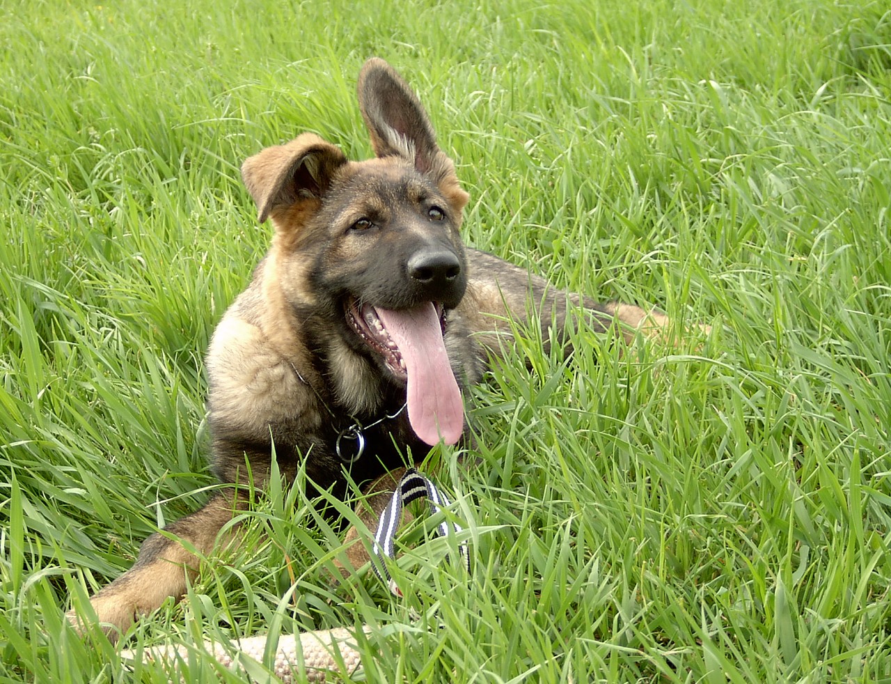 Popis: Na snímku je tříměsíční štěně německého ovčáka. Pes jménem Jaso Naspo.