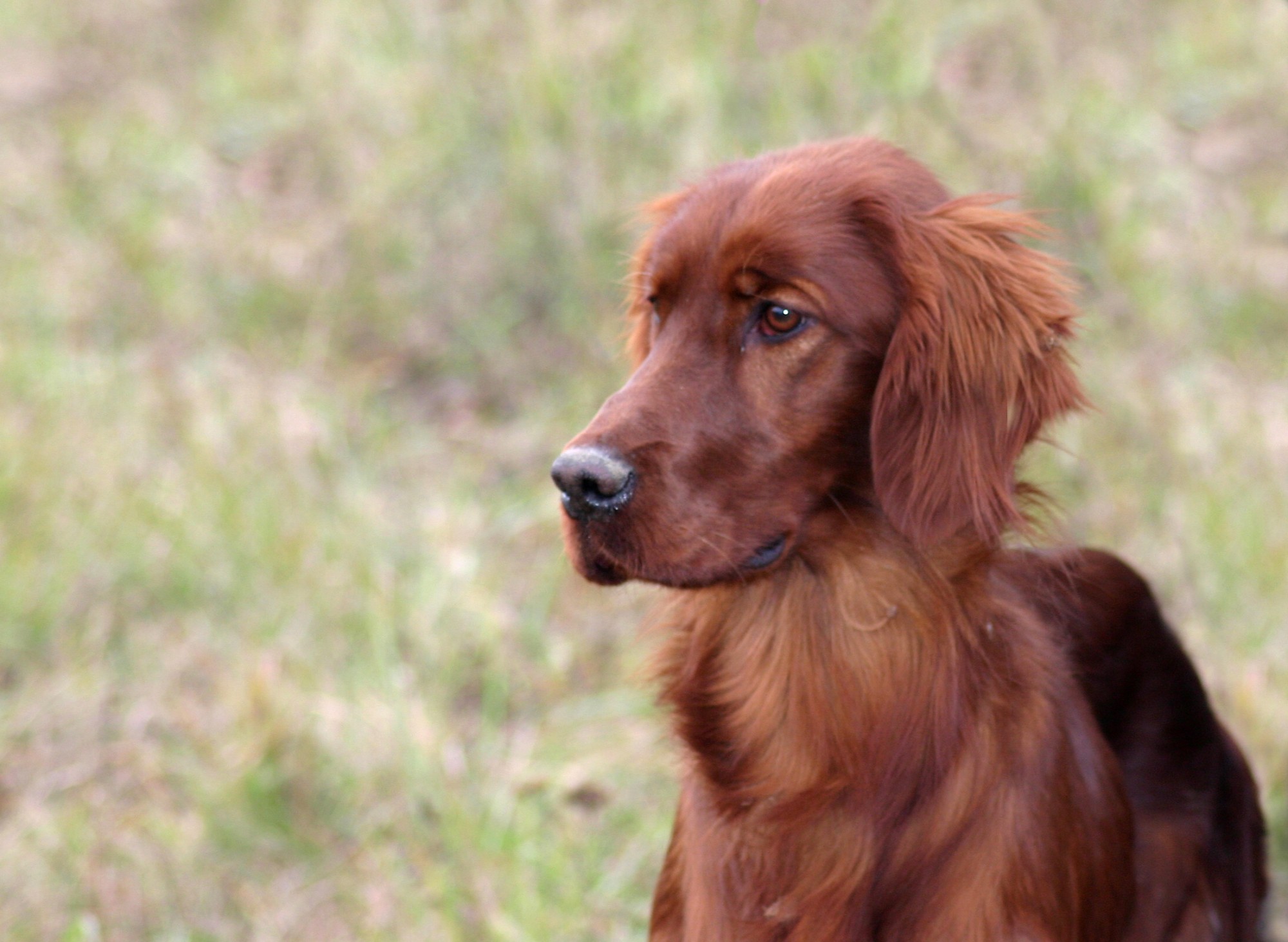 Popis: Irský setr (Irish Red Setter) patří mezi lovecké psy - ohaře, do podskupiny stavěcí psi. Irský setr byl vyšlechtěn v Irsku jako pracovní lovecký pes. Pochází z irských červeno-bílých setrů a neznámých jednobarevných červených psů a již v 18. století byl typově ustálen.