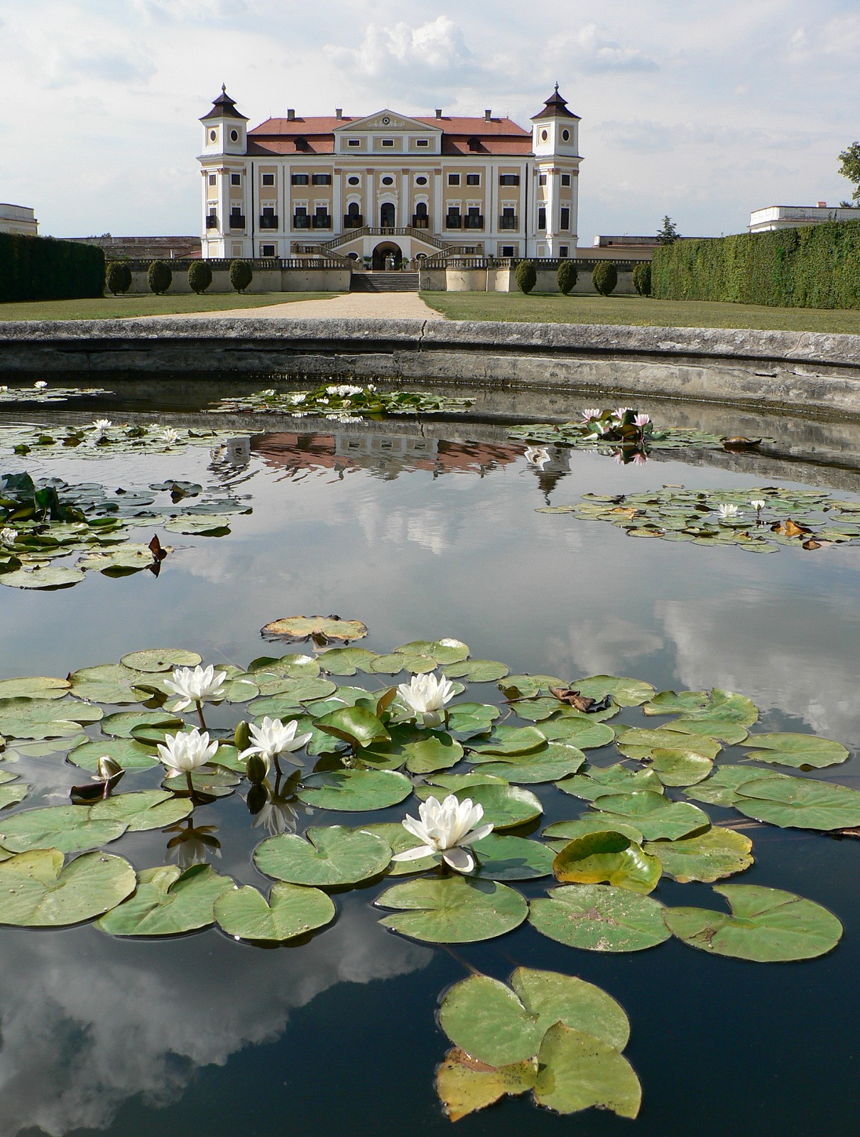 Popis: Trochu jiný pohled na zámek Milotice. Lekníny v kašně přece ke každému správnému zámku patří...