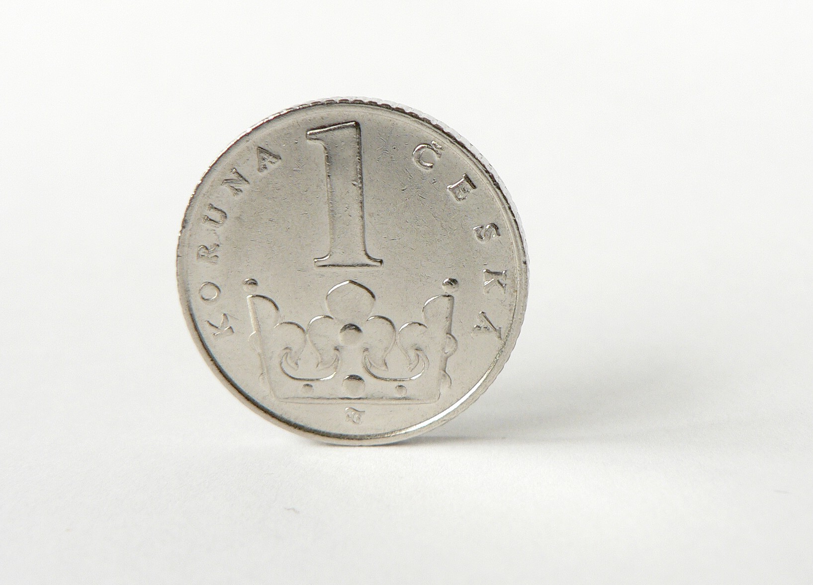 Popis: Jedna česká koruna. Jednokorunová mince ze stejného úhlu pohledu jako předchozí jednodolarovka...
