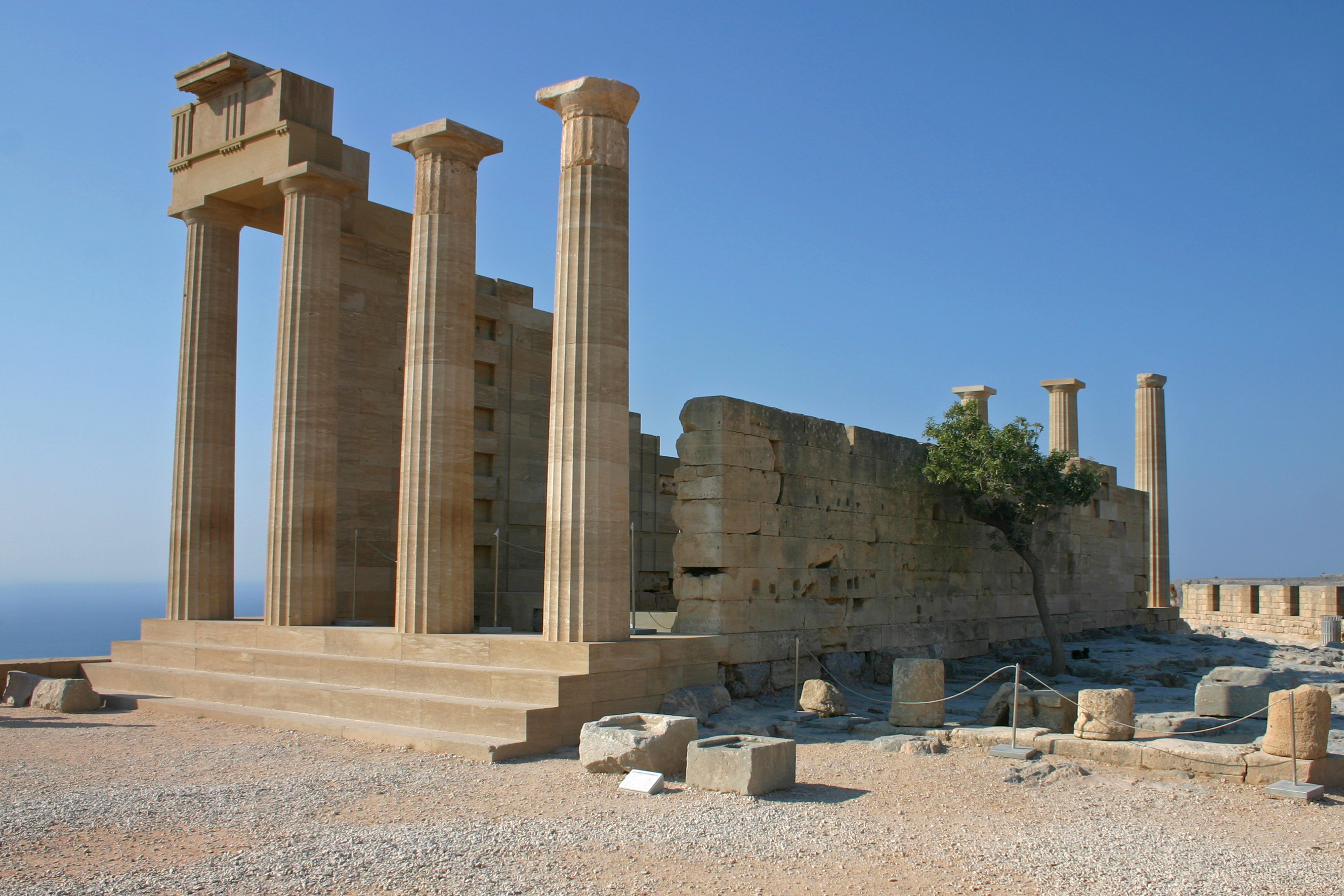 Nad vesnicí Lindos se vypíná středověký hrad, který postavili rytíři řádu johanitů okolo zbytků antické akropole a dali tak vziknout jedinečné kombinaci antické a středověké architektury.