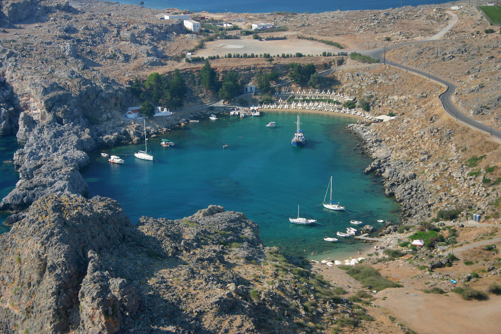Popis: Zátoka svatého Pavla je krásná zátoka pod hradem Lindos. Právě zde měl okolo roku 50 Sv. Pavel zakotvit při své cestě na Rhodos.