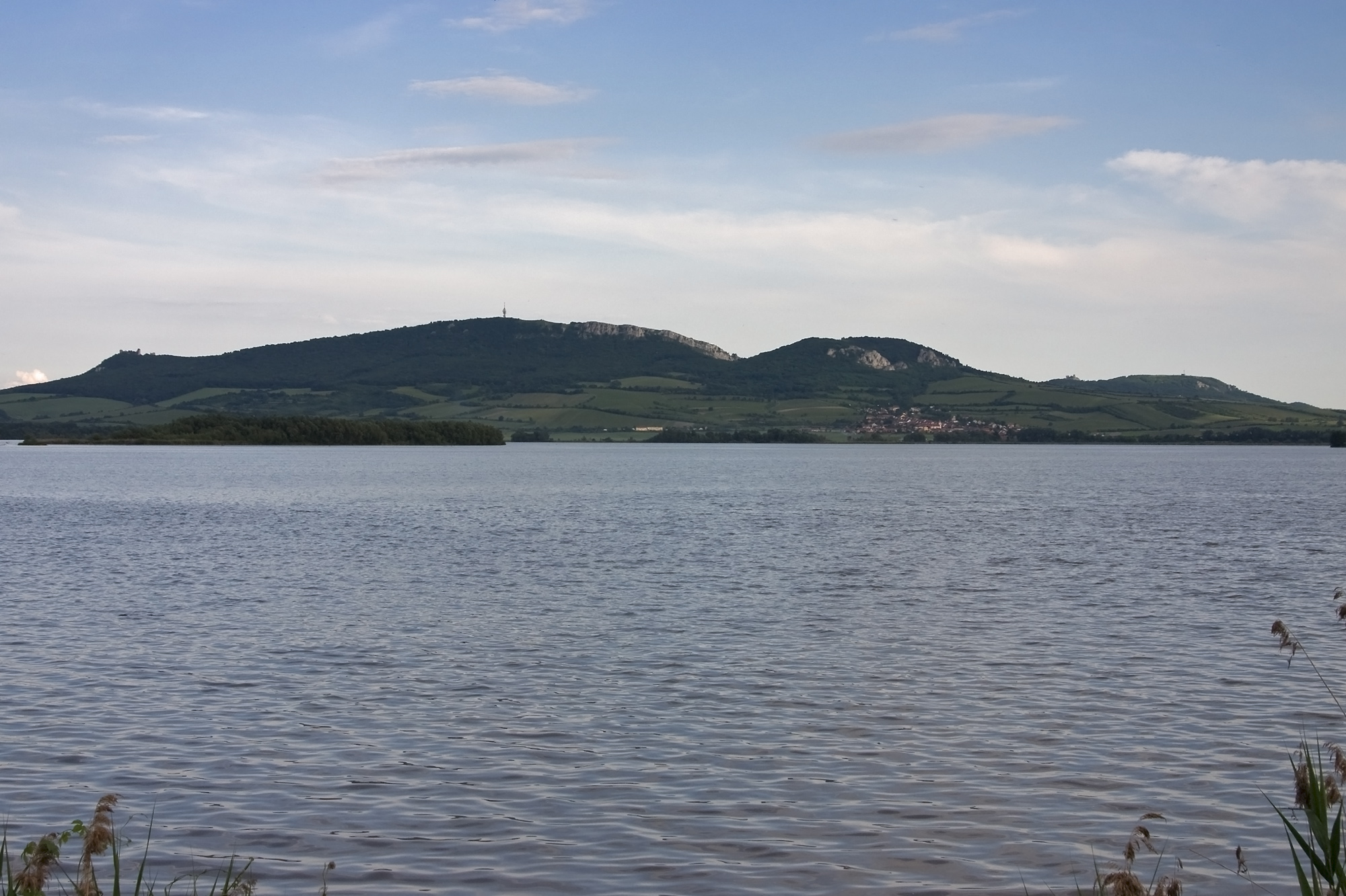 Popis: Pohled na Pálavu přes střední nádrž vodního díla Nové Mlýny.