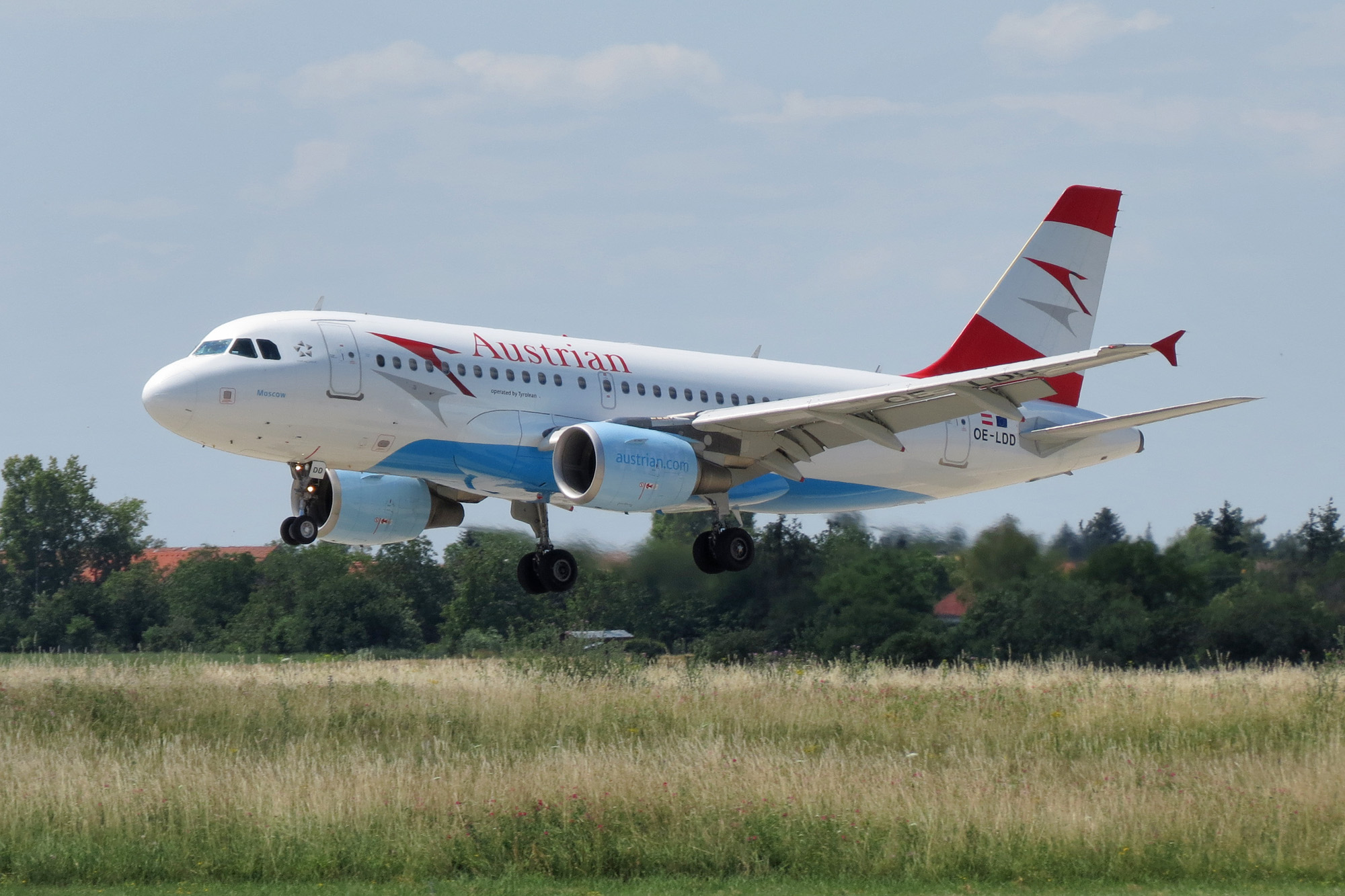 Popis: Airbus A319-112 s registračním označením OE-LDD Austrian Airlines při výcviku na letišti Brno - Tuřany.