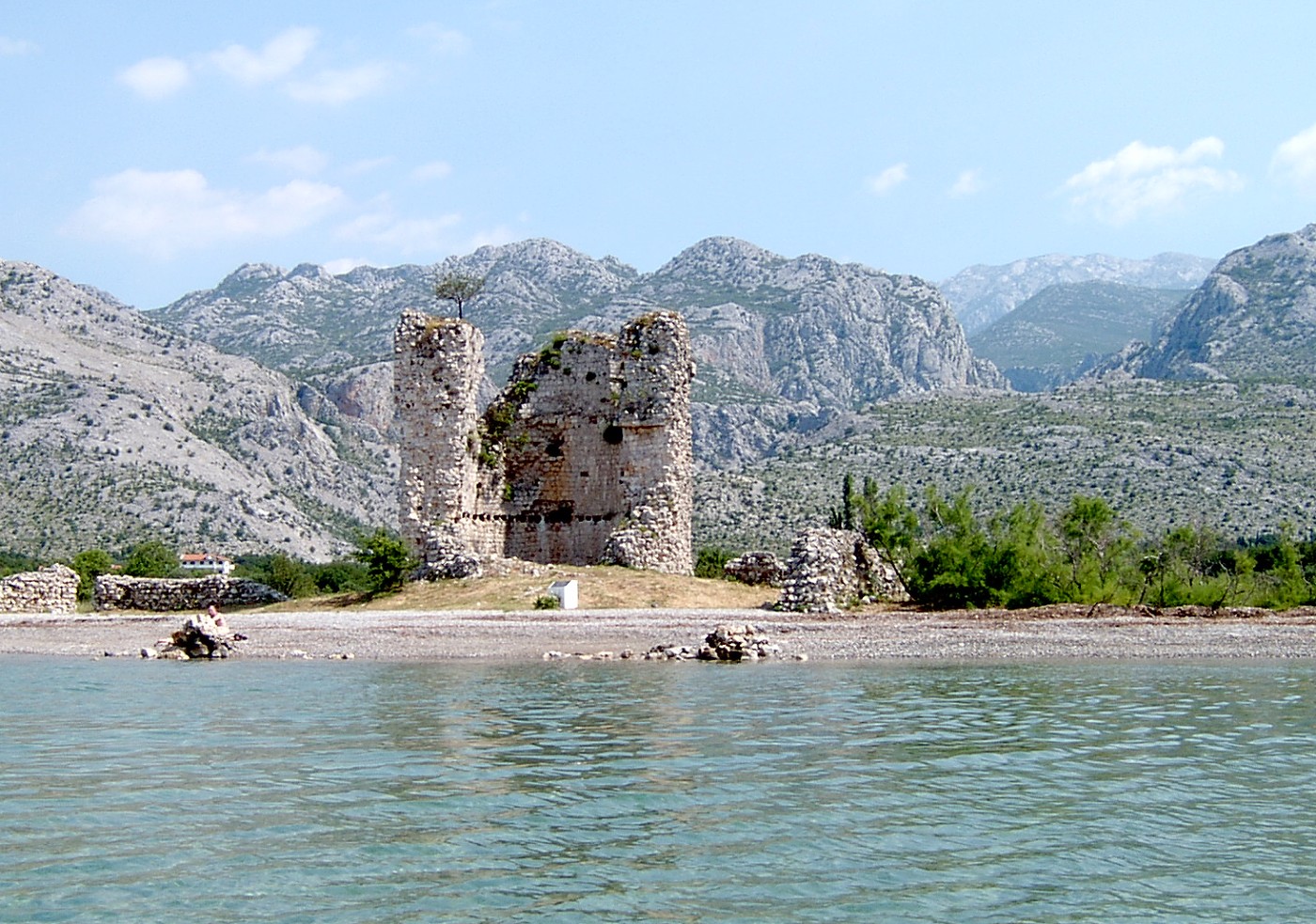 Popis: Večka kula - strážní věž, pozůstatek pobřežního opevnění ze 16 století na mysu Rt Kula u města Starigrad v severní Dalmacii.