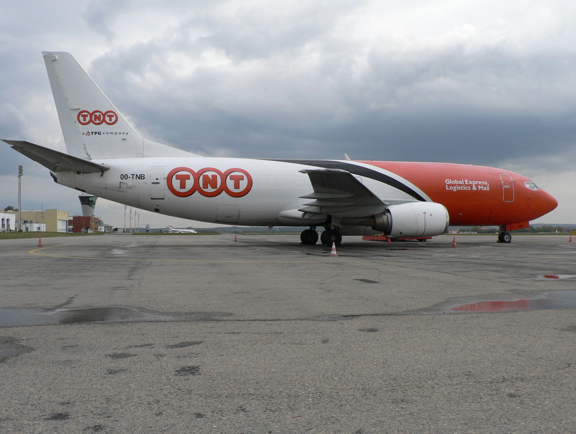 Popis: Boeing 737-3T0(F) s označením OO-TNB patří mezinárodní přepravní společnosti TNT. Tento typ letounu společnost TNT používá pro lety do Brna jen velmi zřídka, pravdelným hostem v Brně je menší BAe-146.